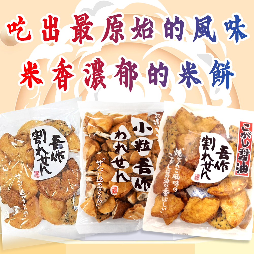 日本元祖 宮坂米菓 硬燒碎仙貝 吾作割れせん/吾作割れせん醬油/小粒吾作 綜合大包裝 餅乾 脆米果 米菓 宵夜 零食 精心烤製、獨特的製法👍吃出最原始的風味🧡米香濃郁的米餅❗米菓有醬油味、口味較重的醬油味、芝麻味三種,滿足你的味蕾👍仙貝的口感與滋味讓你愛不釋手❤容量:吾作割れせん160g、吾作割れせん醬油160g、小粒吾作170g 社群分享: $165 紅利 0 選擇規格樣式: 吾作割れせん160g(缺貨)吾作割れせん醬油160g(缺貨)小粒吾作170g 數量 Qty: decrease increase 購買 詳細資料 日本元祖 宮坂米菓 硬燒碎仙貝 吾作割れせん/吾作割れせん醬油/小粒吾作 綜合大包裝 餅乾 脆米果 米菓 宵夜 零食精心烤製、獨特的製法👍吃出最原始的風味🧡米香濃郁的米餅❗米菓有醬油味、口味較重的醬油味、芝麻味三種,滿足你的味蕾👍仙貝的口感與滋味讓你愛不釋手❤容量:吾作割れせん160g、吾作割れせん醬油160g、小粒吾作170g